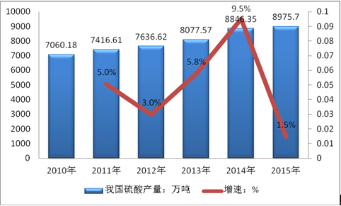 2015年,在國(guó)家一系列政策密集出臺(tái)的環(huán)境下,在國(guó)內(nèi)市場(chǎng)強(qiáng)勁需求的推動(dòng)下,我國(guó)硫酸產(chǎn)業(yè)整體保持平穩(wěn)較快增長(zhǎng)。隨著產(chǎn)業(yè)投入加大、技術(shù)突破與規(guī)模積累,在可以預(yù)見的未來,開始迎來發(fā)展的加速期。