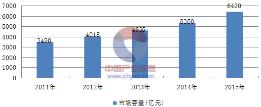 2011-2015年我國美容行業市場容量(億元)