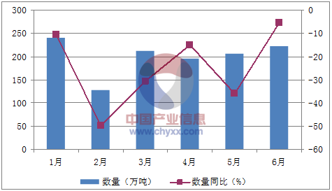 核心提示:智研咨詢數據顯示:2016年1-6月中國礦物肥料及化肥出口數量為1,199萬噸,同比下降25.6%;2016年1-6月中國礦物肥料及化肥出口金額為2,993,058千美元,同比下降39.8%。2016年1-6月中國礦物肥料及化肥出口量統計表中經先略數據中心數據顯示:2016年1-6月中國礦物肥料及化肥出口數量為1,199萬噸,同比下降25.6%;2016年1-6月中國礦物肥料及化肥出口金額為2,993,058千美元,同比下降39.8%。2016年1-6月中國礦物肥料及化肥出口量統計表如下表所示:2016年1-6月中國礦物肥料及化肥出口量統計表月份數量(萬噸)金額(千美元)數量同比(%)金額同比(%)1月240602,539-10.6-21.72月128313,920-49.7-59.73月211516,928-30.7-43.34月195464,758-14.9-32.95月205518,493-36-50.16月222582,713-5.5-25.6數據來源:中國海關,中經先略數據中心整理2016年1-6月中國礦物肥料及化肥出口數量統計圖