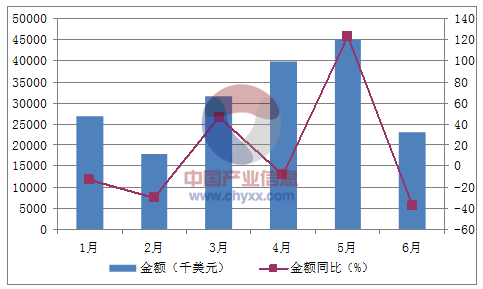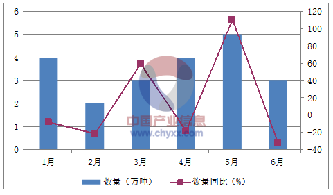 月份數量(萬噸)金額(千美元)數量同比(%)金額同比(%)1月426,880-8.3-12.82月218,028-21.2-29.73月331,51959.346.34月439,898-18.5-7.85月545,106110.8123.26月323,159-31.8-37.5數據來源:中國海關,中經先略數據中心整理