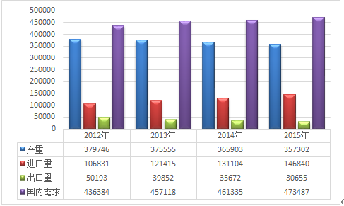 年份進口金額進口數量出口金額出口數量2011年1066188499238492901367567632012年12044268610683184296531501932013年12750276312141574075033398522014年15062695013110471552999356722015年1670118381468406200130430655資料來源:公開資料整理