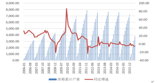 2006-2015年冰箱累計產量
