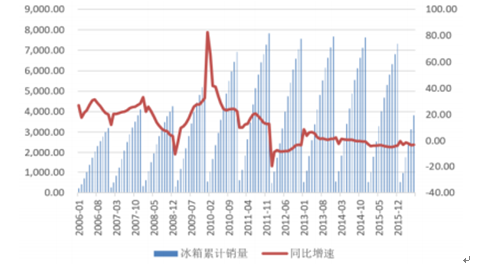 2006-2015年冰箱累計銷量