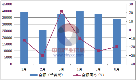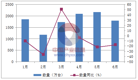 月份數量(萬臺)金額(千美元)數量同比(%)金額同比(%)1月1,84739,211-10.4-12.32月1,17125,389-36.4-30.43月1,71937,59550.721.64月2,08739,572-4-10.45月2,16437,807-21.8-24.86月1,78933,819-17.4-19.5數據來源:中國海關,中經先略數據中心整理