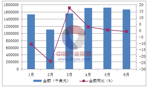 月份數(shù)量(萬噸)金額(千美元)數(shù)量同比(%)金額同比(%)1月181,530,961-5.1-10.92月131,105,923-16.1-24.13月181,558,00529.617.54月201,707,1409.42.95月201,713,6236.10.46月191,666,4492.7-0.8數(shù)據(jù)來源:中國海關(guān),中經(jīng)先略數(shù)據(jù)中心整理