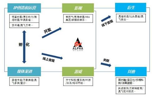 奧飛娛樂的前身為奧飛動漫,經過20余年的發展,奧飛從玩具和產品代工逐步演變為泛娛樂生態型企業。奧飛的泛娛樂布局包含IP創造和運營、媒體渠道、影視、游戲、衍生、其他等板塊。