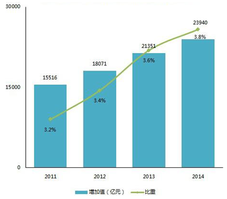 2011-2014年文化產業增加值 及占GDP比重