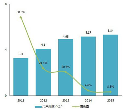 2011-2015年中國游戲用戶規模和增長率