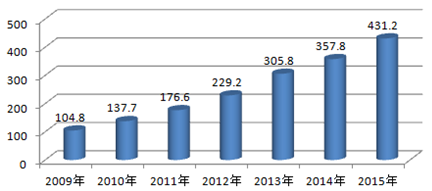 2009-2015年中國家用醫(yī)療器械市場規(guī)模