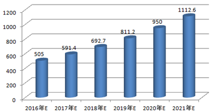 美國家用醫(yī)療器械市場的人均消費水平為國內(nèi)的20~30倍左右,因此國內(nèi)市場家用醫(yī)療器械提升空間還很大,預(yù)計未來幾年將繼續(xù)維持17%以上的年增長率。到2021年中國家用醫(yī)療器械行業(yè)市場規(guī)模將達到1112.6億元。