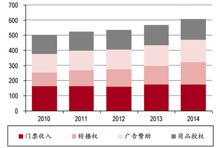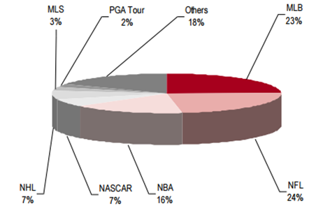 北美體育市場(chǎng)各項(xiàng)收入情況