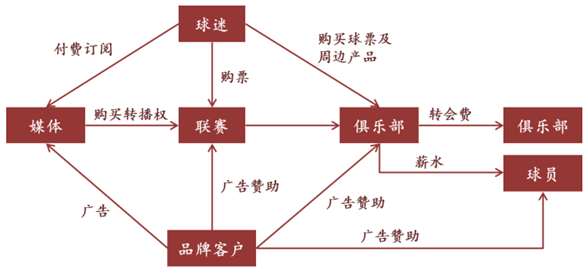 體育 IP 的變現(xiàn)最終是靠球迷的消費(fèi),情感是核心。體育生態(tài)圈參與者眾多, 包括了球迷、品牌客戶、媒體、俱樂部、球員、聯(lián)賽公司等等,球迷通過購(gòu) 買球票及周邊產(chǎn)品、付費(fèi)訂閱電視轉(zhuǎn)播等方式消費(fèi),企業(yè)客戶通過各種渠道 進(jìn)行廣告贊助,但最終還是由球迷買單,因此球迷是體育 IP 變現(xiàn)的基礎(chǔ),之 所以愿意消費(fèi),核心是“情感”,優(yōu)質(zhì)的體育 IP 往往能夠喚起受眾的情懷。