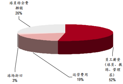 體育 IP 的最直接受益者為球員個(gè)人。對(duì)于職業(yè)俱樂部而言,其主要成本為人 員薪酬,包括球員、教練、管理者,如曼聯(lián)的員工薪資占到了總成本的 52%, NBA、NFL 的球員薪酬更是占聯(lián)盟總收入的 50%以上,近期 NBA 新簽下巨額的 轉(zhuǎn)播合同,使得球員薪水也屢創(chuàng)新高。