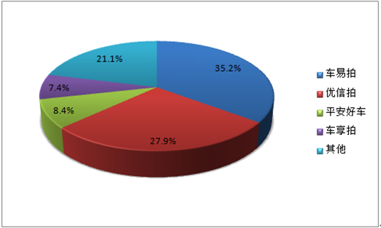 2、從2015年二手車電商平臺成交量來看,市場集中度仍較高,車易拍、優信拍兩家平臺的交易規模超過60%。其中,車易拍以35.2%占據領先位置,優信拍以27.9%緊隨其后;平安好車、車享拍2015年發展迅速,兩家份額分別占到8.4%、7.4%。由于2015年出現了較多新興的二手車電商平臺,因此相比去年同期車易拍和優信拍兩家獨大的局面有所不同,以平安好車、車享拍、瓜子二手車、人人車、天天拍車、車置寶、好車無憂、車王等企業為代表的新興力量正在漸漸壯大,預計未來二手車電商領域的競爭格局仍將發生改變,集中度會有一定程度降低。