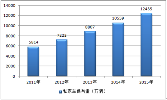 2011-2015年中國私家車保有量及增速