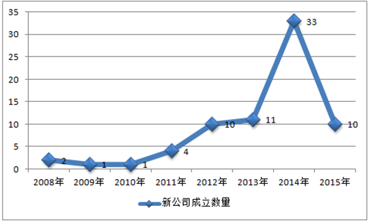 2008-2015年二手車電商新公司成立數量