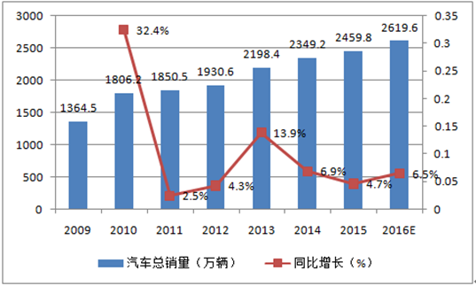 2009-2015年中國汽車總銷量