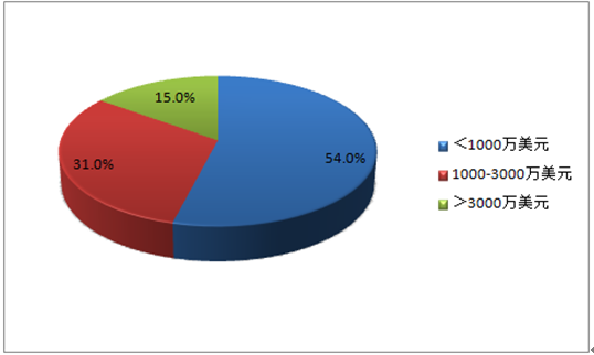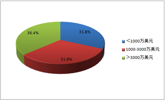 2014年二手車電商投融資規模分布