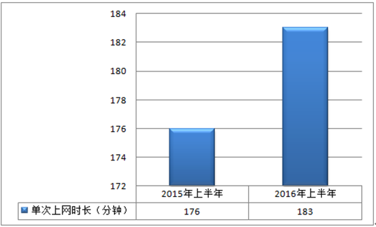 2015年上半年網吧客流量為18186466人次,2016年上半年網吧客流量為16917937人次,網吧日均客流量略有下降;2015年上半年單次上網時長為176分鐘,2016年上半年單次上網時長為183分鐘,平均單次上網時長提高約6分鐘。
