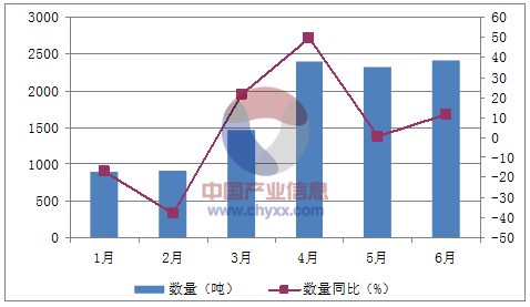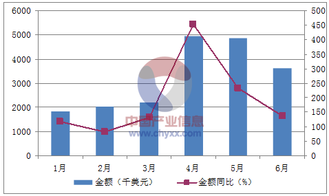 月份數(shù)量(噸)金額(千美元)數(shù)量同比(%)金額同比(%)1月9071,850-16.8118.32月9222,045-37.883.73月1,4682,19921.6131.84月2,4034,94449.5452.55月2,3264,8680.4232.66月2,4203,62711.6137.1數(shù)據(jù)來(lái)源:中國(guó)海關(guān),中經(jīng)先略數(shù)據(jù)中心整理