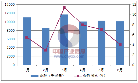 月份數量(百萬個)金額(千美元)數量同比(%)金額同比(%)1月11311,01120.15.52月888,59413.52.93月12711,71826.911.44月11210,048217.95月11610,21518.776月11310,08414.74數據來源:中國海關,中經先略數據中心整理