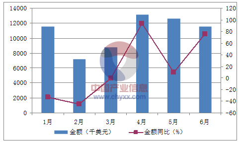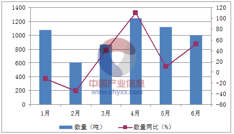 月份數量(噸)金額(千美元)數量同比(%)金額同比(%)1月1,07711,524-12.1-33.12月6067,187-34.5-45.13月8688,76541.1-0.64月1,24913,117110.293.45月1,12312,59410.29.86月1,00111,54452.175.6數據來源:中國海關,中經先略數據中心整理