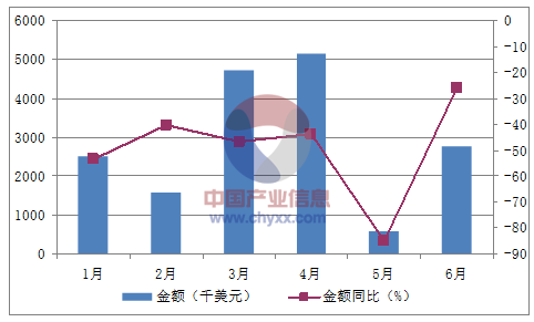 月份數量(萬噸)金額(千美元)數量同比(%)金額同比(%)1月12,513-19.9-53.52月11,576-5.2-40.23月24,733-13.5-46.54月25,146-23.9-43.95月-598--84.76月12,761-11.2-26數據來源:中國海關,中經先略數據中心整理