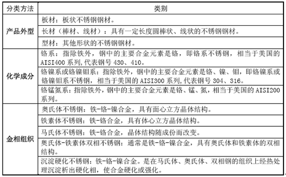 不銹鋼常用分類如下表所示