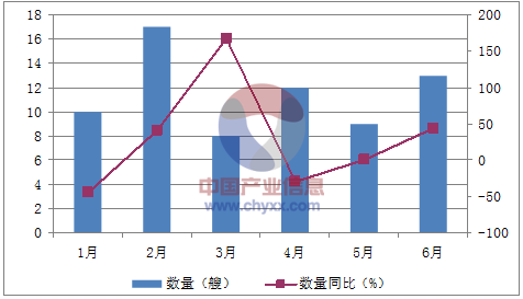 月份數量(艘)金額(千美元)數量同比(%)金額同比(%)1月10280,790-44.4-55.52月17369,80041.7-21.83月8173,838166.758.44月12287,399-29.4-26.65月9463,3580123.96月13530,72444.466數據來源:中國海關,中經先略數據中心整理