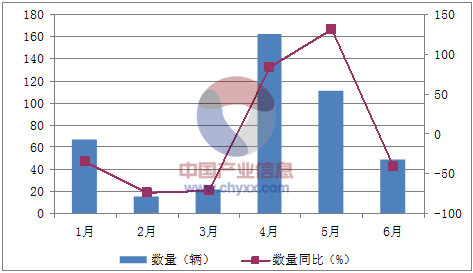 2016年1-6月中國10座至29座的客車進口量統計表