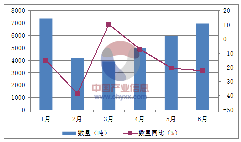 月份數(shù)量(噸)金額(千美元)數(shù)量同比(%)金額同比(%)1月7,3761,026,167-15.1-19.42月4,220553,767-38.6-44.63月3,911522,99910.154月4,995663,595-7.3-8.65月5,977819,932-20.7-176月6,9721,011,997-22.3-19.6數(shù)據(jù)來源:中國(guó)海關(guān),中經(jīng)先略數(shù)據(jù)中心整理