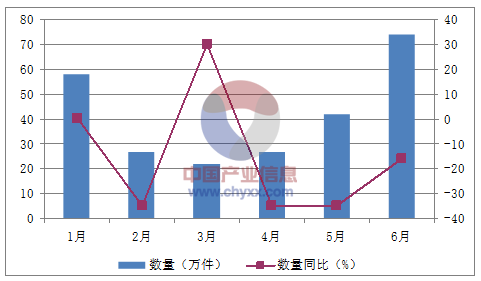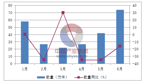 月份數(shù)量(萬件)金額(千美元)數(shù)量同比(%)金額同比(%)1月5824,5440.6-5.72月2710,544-34.9-443月229,37929.948.74月2710,910-34.6-25.15月4219,195-34.9-29.56月7434,272-15.9-20數(shù)據(jù)來源:中國海關(guān),中經(jīng)先略數(shù)據(jù)中心整理