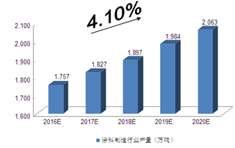 2016-2020年中國涂料制造行業產量預測