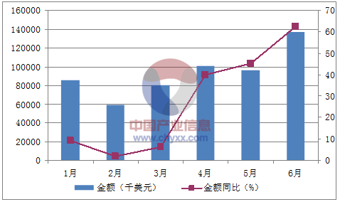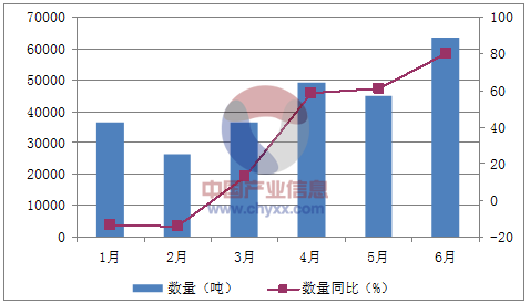 月份數量(噸)金額(千美元)數量同比(%)金額同比(%)1月3641985,486-13.59.32月2626658,622-13.81.93月3652679,70712.86.44月49088100,73858.839.95月4470495,75561.145.16月63455136,57380.462.3數據來源:中國海關,中經先略數據中心整理