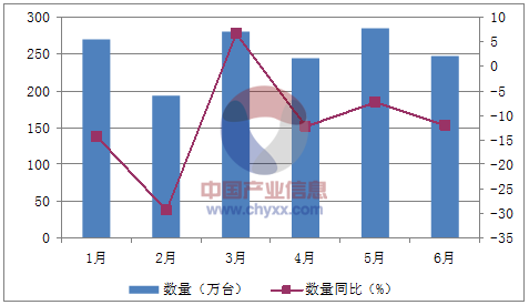 2016年1-6月中國液晶顯示器出口數(shù)量統(tǒng)計(jì)圖