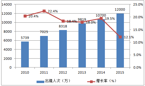 2010-2015年出境旅游總人次統計