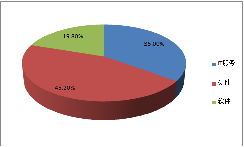 2012年中國金融業IT投資規模為1066.6億元,同比增長7.0%,增速較2011年下降2.1個百分點。2013年,中國金融業IT投資規模約為1165.8億元,同比增長9.3%。2014年,中國金融業IT應用投資規模增長12%至1305.70億元。2015年,中國金融業IT應用投資規模約為1500.2億元。在產品投資類別方面,硬件依舊是2015年金融行業用戶投資購買最重要的產品類別,占整體IT應用市場的45.20%;其次是IT服務,占整體IT應用市場的35.00%;2015年金融行業用戶對軟件產品的投資購買需求規模在整體IT應用市場中的比重為19.80%。