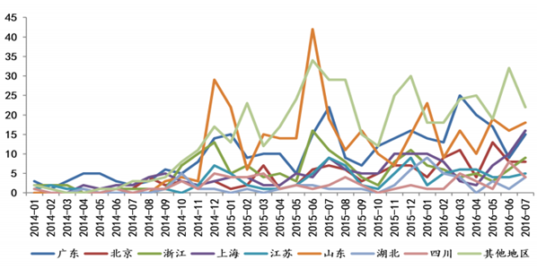 核心提示:根據數據顯示,2016 年 7 月當月網貸市場成交量為 1829.73 元,其中廣東省 468.31 億元,北京市 470.88 億元,浙江省 220.42 億 元,上海市 407.95 億元,江蘇省 60.17 億元,山東省 69.17根據數據顯示,2016 年 7 月當月網貸市場成交量為 1829.73 元,其中廣東省 468.31 億元,北京市 470.88 億元,浙江省 220.42 億 元,上海市 407.95 億元,江蘇省 60.17 億元,山東省 69.17 億元,湖 北省 22.6 億元,四川省 29.24 億元,其他地區 80.99 億元。