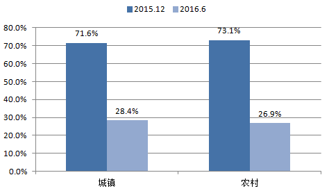 農村互聯網普及率保持穩定,截至2016年6月為31.7%。但是,城鎮地區互聯網普及率超過農村地區35.6個百分點,城鄉差距仍然較大。