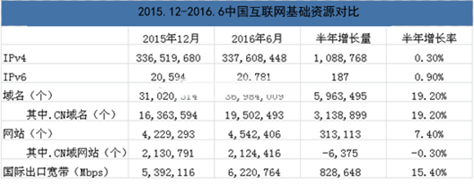 2016年6月中國互聯網基礎資源情況及網民規模持續擴大分析