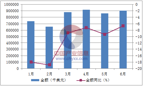 核心提示:智研咨詢數據顯示: 2016年1-6月中國變壓、整流、電感器及零件進口金額為4,923,480千美元,同比下降11.4%。2016年1-6月中國變壓、整流、電感器及零件進口量統計表如下表所示: 2016年1-6月中國變壓、整流、電感器及零中經先略數據中心數據顯示: 2016年1-6月中國變壓、整流、電感器及零件進口金額為4,923,480千美元,同比下降11.4%。2016年1-6月中國變壓、整流、電感器及零件進口量統計表如下表所示:2016年1-6月中國變壓、整流、電感器及零件進口量統計表月份金額(千美元)金額同比(%)1月734130-182月650728-18.93月877687-8.94月912913-7.35月857645-9.36月903181-6.7數據來源:中國海關,中經先略數據中心整理2016年1-6月中國變壓、整流、電感器及零件進口金額統計圖
