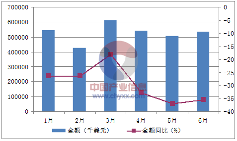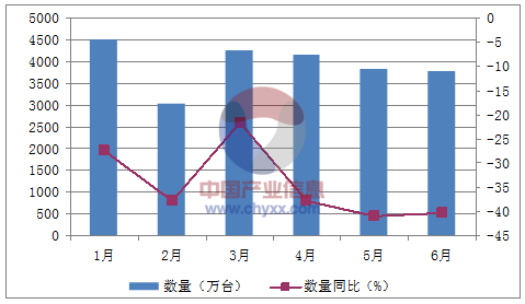 月份數量(萬臺)金額(千美元)數量同比(%)金額同比(%)1月4,496543,848-27.5-26.42月3,015425,345-37.9-26.43月4,259609,638-21.5-18.14月4,141540,925-37.8-32.85月3,827504,266-41-36.96月3,776535,568-40.2-35.5數據來源:中國海關,中經先略數據中心整理
