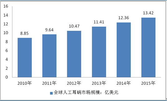 2010-2015年全球人工耳蝸市場規模:億美元