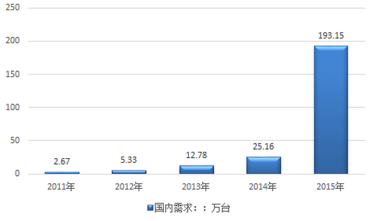 年份產(chǎn)量:萬臺(tái)進(jìn)口量:萬臺(tái)供應(yīng)量合計(jì)2011年30.353.352012年70.417.412013年780.4578.452014年1000.57100.572015年15500.551550.55資料來源:中經(jīng)先略數(shù)據(jù)中心整理