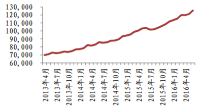 核心提示:2016 年上半年,保險行業總體呈現快速發展態勢,原保險保費收入達到 18812.82 億元,較 2015 年上半年同比增 長 37.29%,增幅較上年同期上升 18.02 個百分點。隨著保費擴張迅速,保險業資產總量在 6 月突破 14 萬2016 年上半年,保險行業總體呈現快速發展態勢,原保險保費收入達到 18812.82 億元,較 2015 年上半年同比增 長 37.29%,增幅較上年同期上升 18.02 個百分點。隨著保費擴張迅速,保險業資產總量在 6 月突破 14 萬億元大關, 達到 14.27 萬億元,較年初增長 15.42%。在總體的保費增長中,人身險貢獻巨大,在一月份“開門紅”之后,人身險保 費收入在六月再次迎來一波強勢增幅,壽險、健康險和人身意外傷害險的環比漲幅分別為 49.10%、19.77%和 19.52%, 保費收入則分別達到 3651 億元、1113 億元和 617 億元。相比 2015 年上半年,2016 年 1-6 月人身險保費收入每月同比 漲幅保持在 50%左右的較高水平。而其中健康險勢頭強勁,在第一季度每月 70%左右的穩定快速增長后,第二季度更 是出現連續三月 90%左右的漲幅,在總保費收入中的占比從年初的 6.70%上升到 12.54%,成為發展亮點。