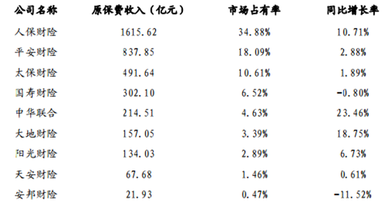 2016 年 1~6 月重點財產險公司原保費收入分析