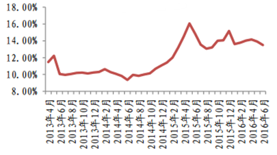 2013 年至 2016 年 6 月我國保險公司財務杠桿率