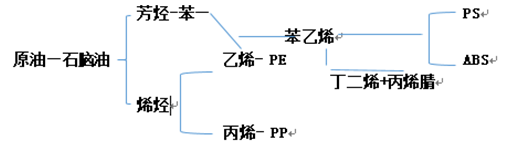 相比聚烯烴生產企業盈利水平提升,硬膠與PVC受成本下行紅利卻不明顯,主要因其直接成本上游影響不同,通過簡易流程圖發現,PS/ABS受苯乙烯影響更為直接,而PVC電石法工藝路線是我國PVC行業重要的一個分支,占我國PVC產能80%左右,因此受原油直接下行影響減弱。