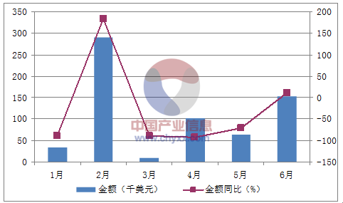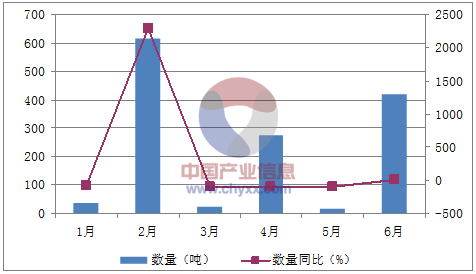 月份數量(噸)金額(千美元)數量同比(%)金額同比(%)1月3934-79.2-89.12月6152902,283.70184.23月2510-89.6-89.64月278103-95-92.95月1964-96.7-70.66月42015316.712數據來源:中國海關,中經先略數據中心整理