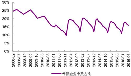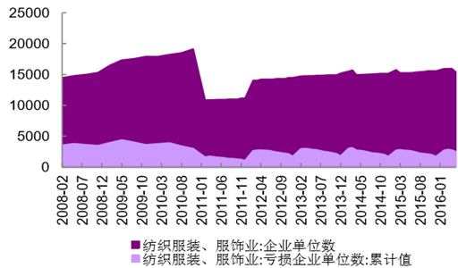 歷年紡織服裝、服飾業(yè)虧損企業(yè)個數(shù)占比